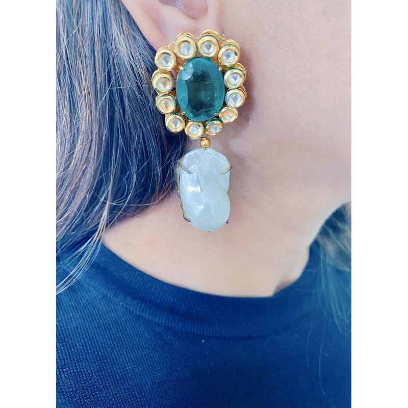Give yourself a royal and elegant vibe with the Zai earrings that are crafted from exquisite 24k gold plated kundan, baroque pearls and semi-precious stones. The style makes for a versatile pick to wear solo or with a necklace on your festive or wedding looks.