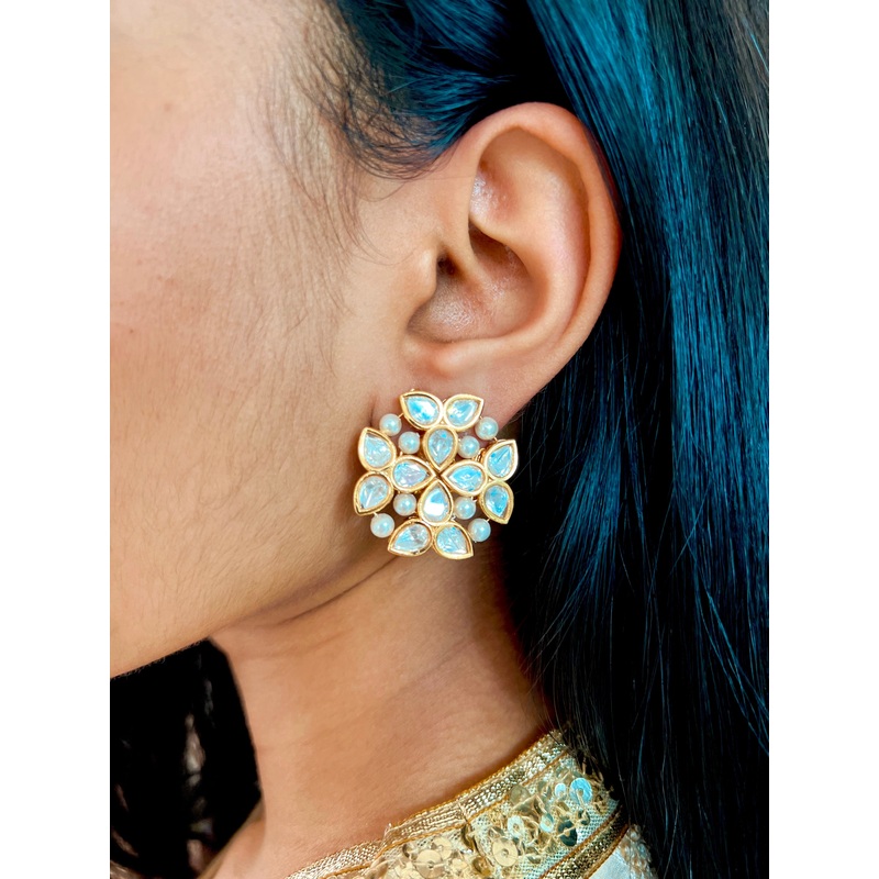 TheZia Earring are from our Kundan Collection.An absolute delight to take your outfit to a ten on ten. The communicative kundan is handcrafted to impart ultimate grace and drama only to make heads turn every time you walk by. You don't have to think twice